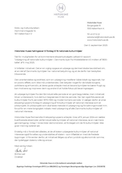2025-09-05 Høringssvar Historiske Huse – Nationale Kulturmiljøer